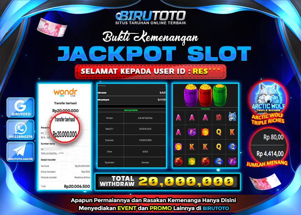 BIRUTOTO JACKPOT SLOT ARCTIC WOLF TRIPLE RICHES Rp.20.000.000 LUNAS