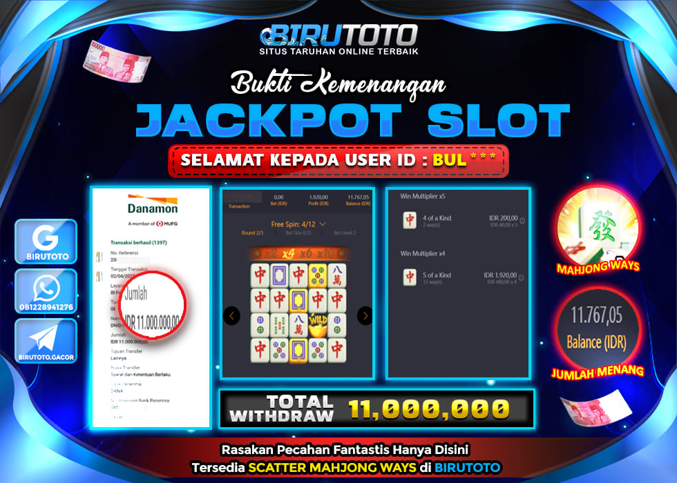 BIRUTOTO JACKPOT SLOT MAHJONG WAYS Rp.11.000.000 LUNAS
