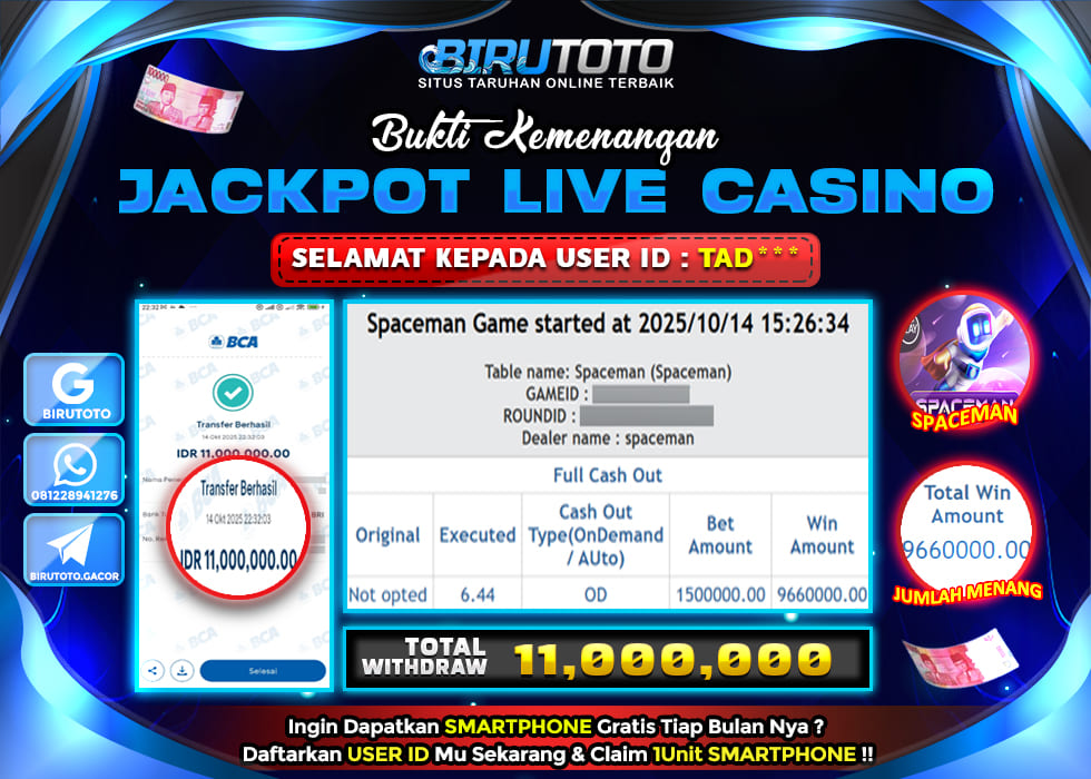 BIRUTOTO JACKPOT LIVE CASINO SPACEMAN Rp.11.000.000 LUNAS