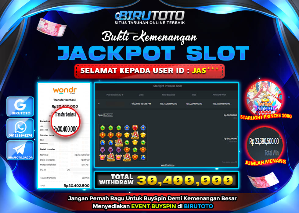 BIRUTOTO JACKPOT SLOT STARLIGHT PRINCESS 1000 Rp.30.400.000 LUNAS