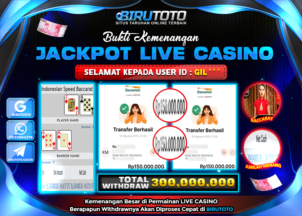 BIRUTOTO JACKPOT LIVE CASINO BACCARAT Rp.300.000.000 LUNAS