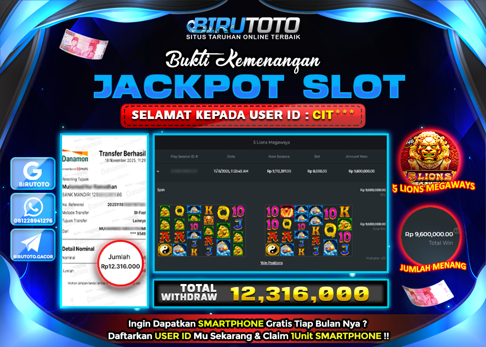 BIRUTOTO JACKPOT SLOT 5 LION MEGAWAYS Rp.12.316.000 LUNAS