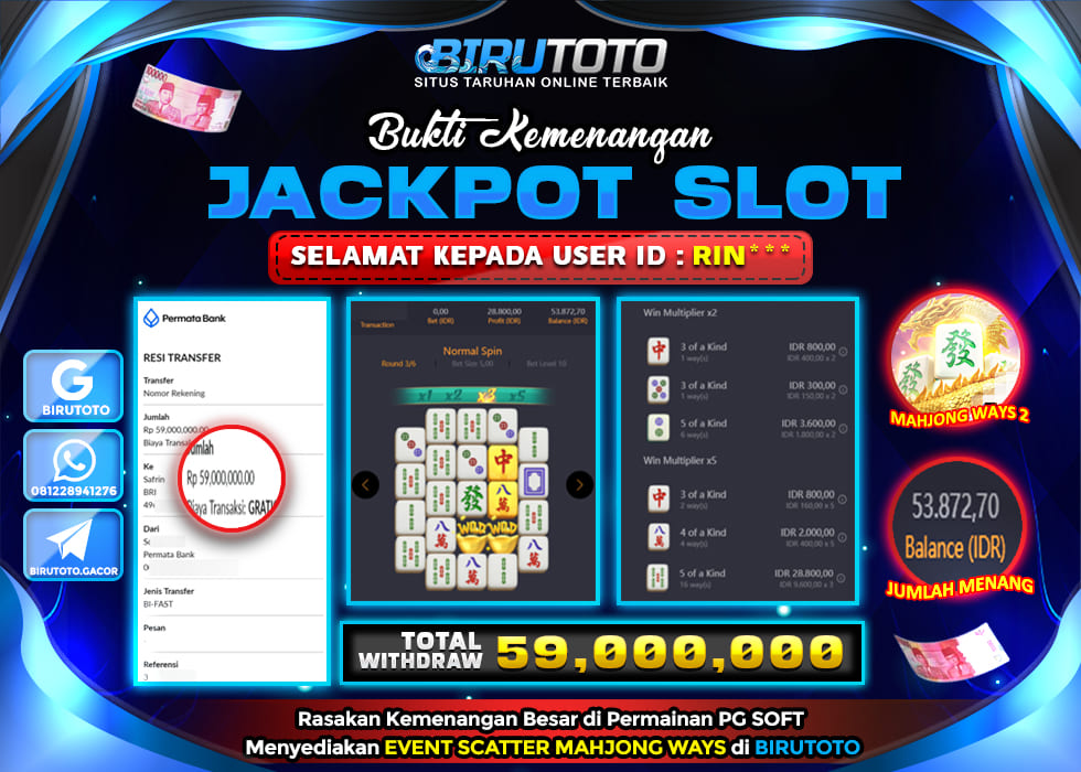 BIRUTOTO JACKPOT SLOT MAHJONG WAYS 2 Rp.59.000.000 LUNAS