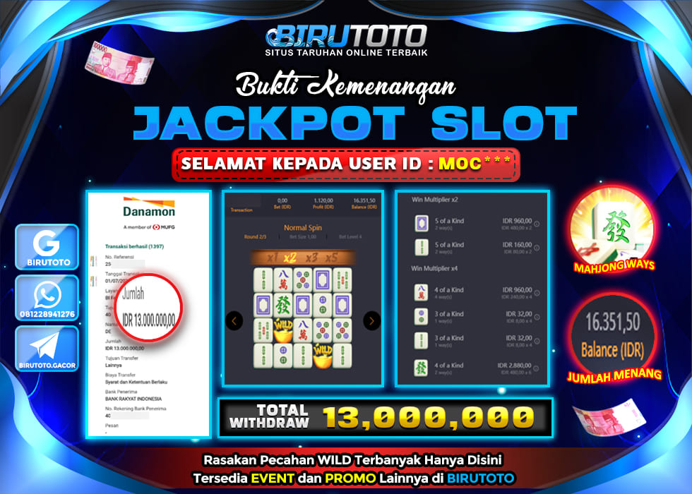 BIRUTOTO JACKPOT SLOT MAHJONG WAYS Rp.13.000.000 LUNAS