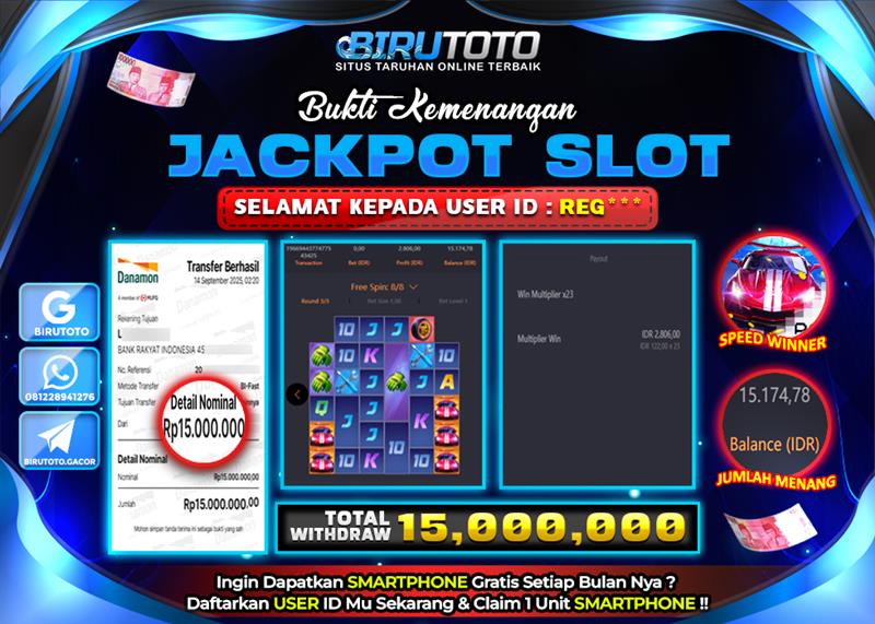 BIRUTOTO JACKPOT SLOT SPEED WINNER Rp.15.000.000 LUNAS