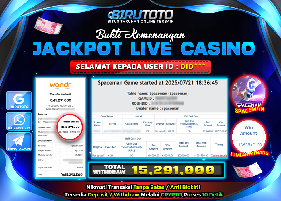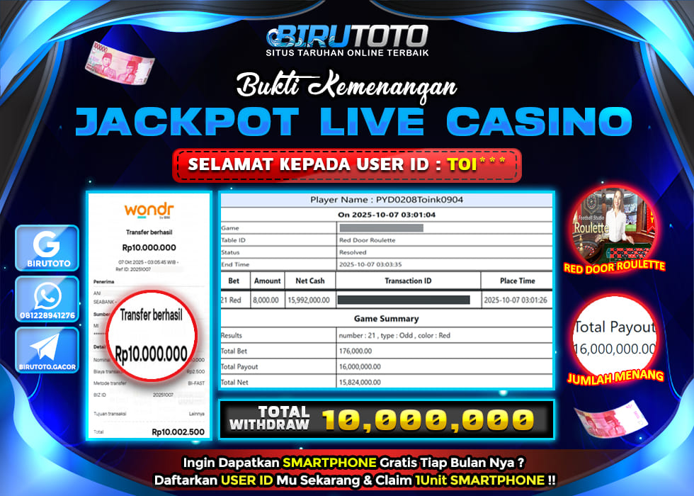 Selamat Kepada Member BIRUTOTO DI**** Telah Jackpot Di LIVE CA