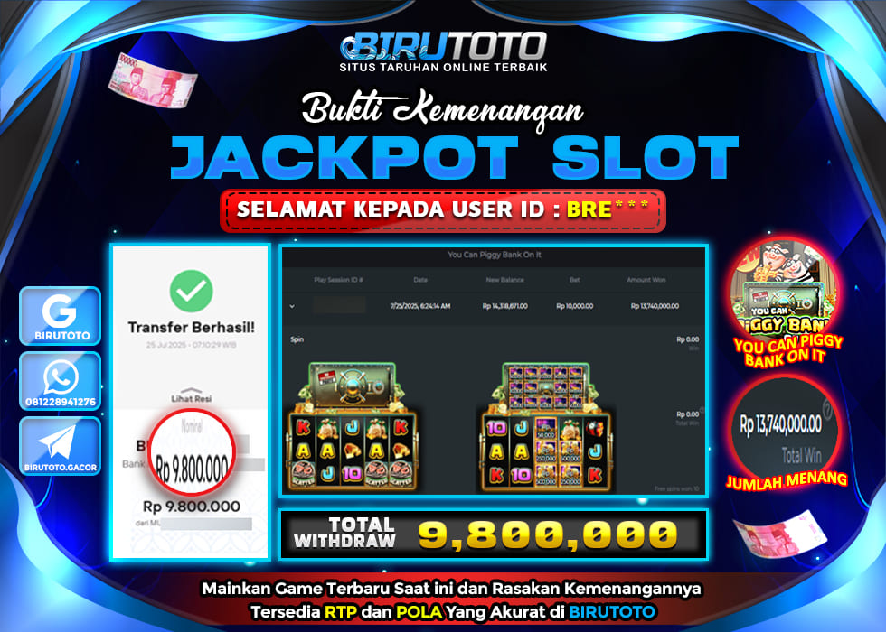 BIRUTOTO JACKPOT SLOT YOU CAN PIGGY BANK ON IT Rp.9.800.000 LUNAS