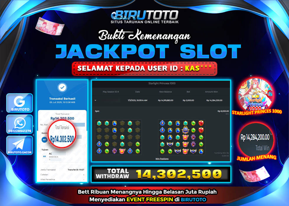 BIRUTOTO JACKPOT SLOT STARLIGHT PRINCESS 1000 Rp.14.302.500 LUNAS