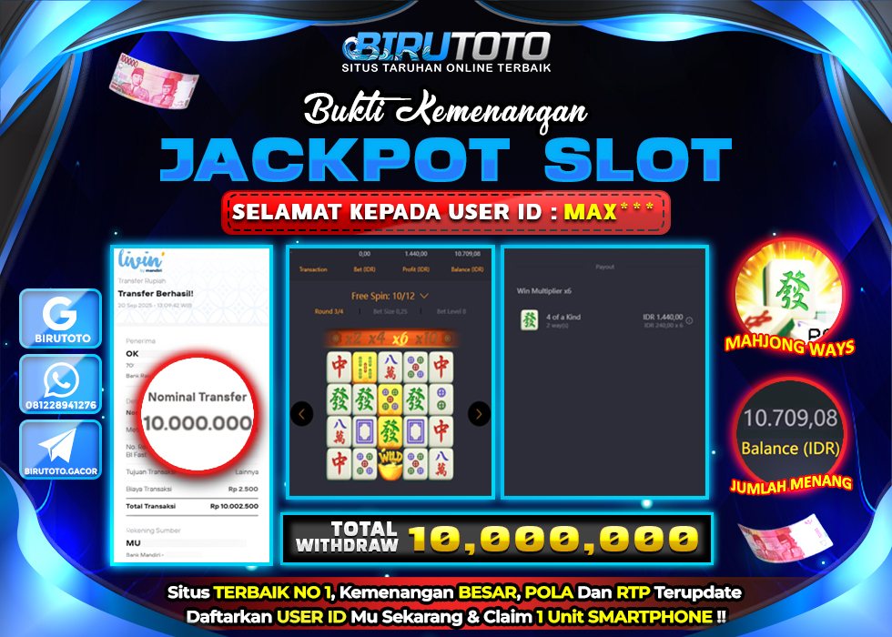 BIRUTOTO JACKPOT SLOT MAHJONG WAYS Rp.10.000.000 LUNAS
