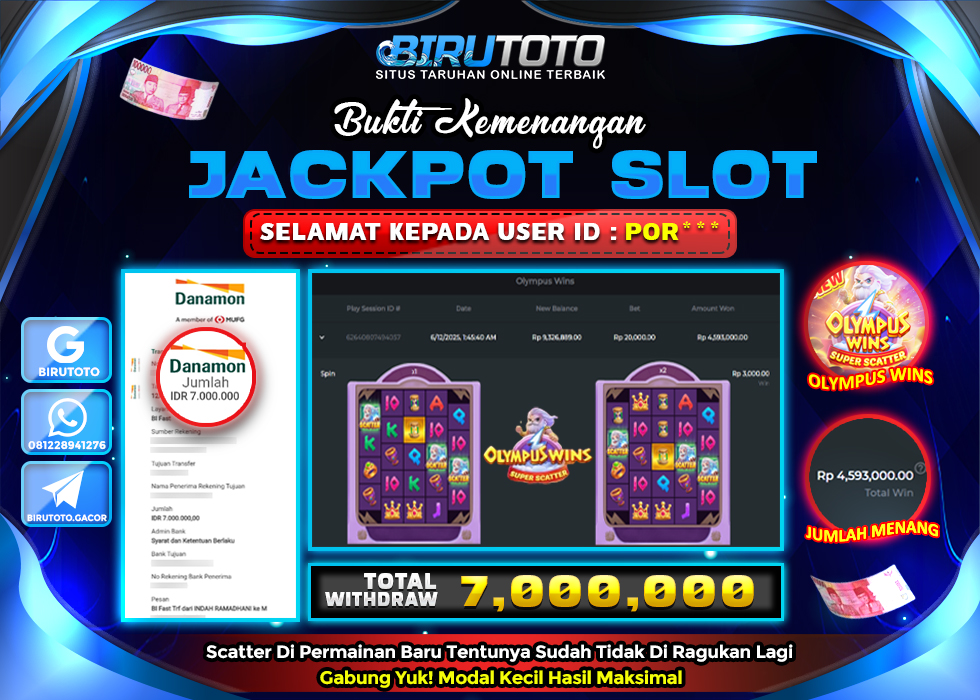 BIRUTOTO JACKPOT SLOT OLYMPUS WINS Rp.7.000.000 LUNAS