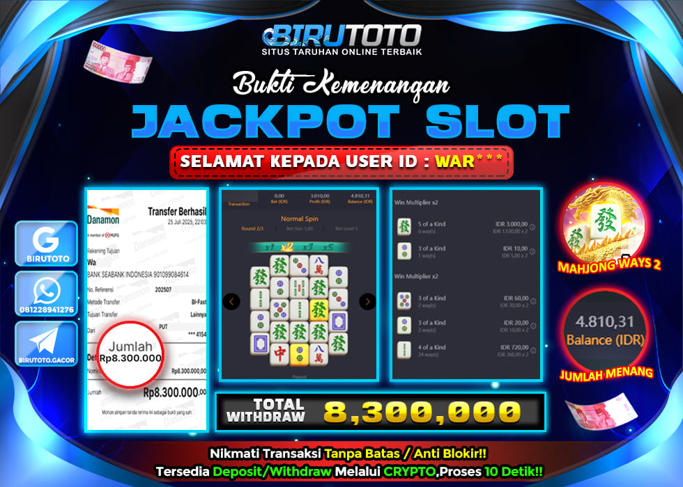 Selamat Kepada Member BIRUTOTO WA**** Telah Jackpot Di SLOT MAHJONG WAYS 2