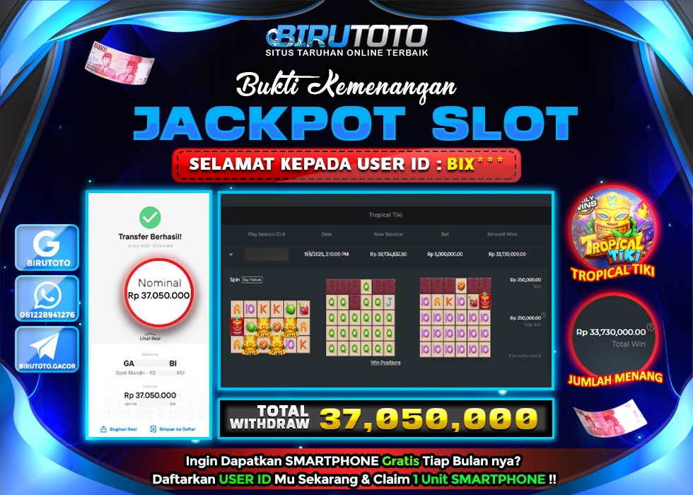 Selamat Kepada Member BIRUTOTO BI**** Telah Jackpot Di SLOT TROPICAL TIKI