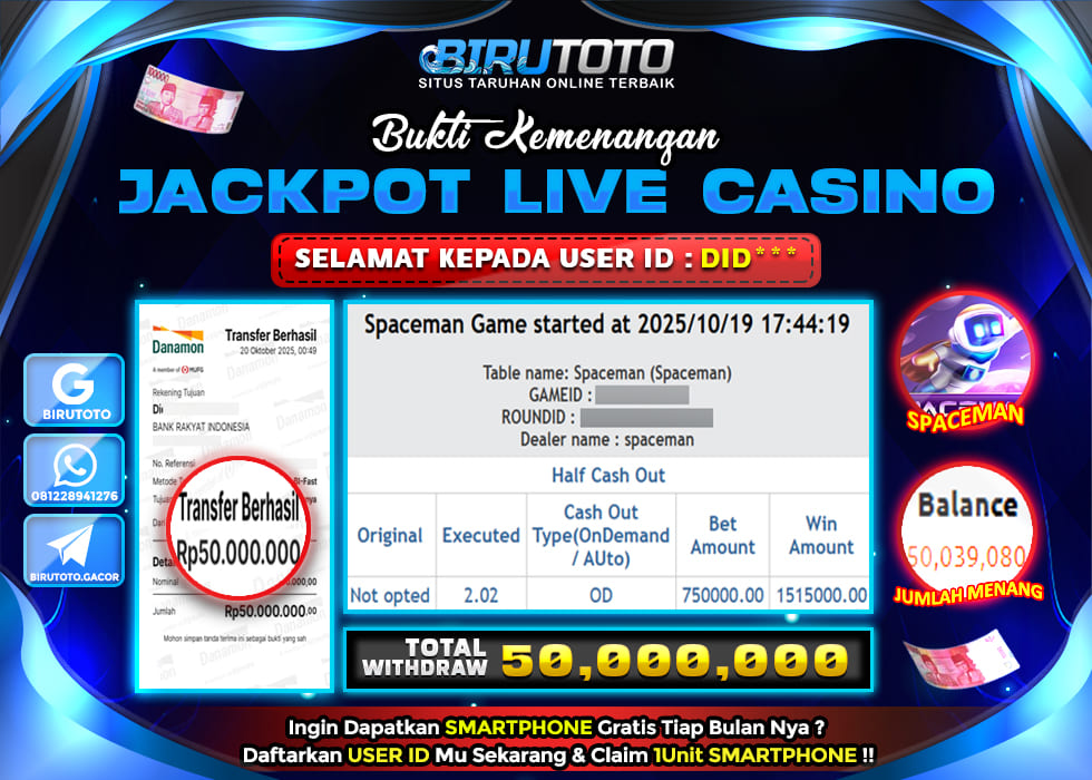 BIRUTOTO JACKPOT LIVE CASINO SPACEMAN Rp.50.000.000 LUNAS