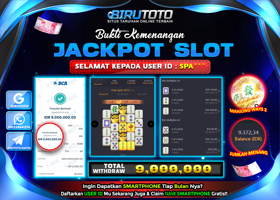 Selamat Kepada Member BIRUTOTO SP**** Telah Jackpot Di SLOT MAHJONG WAYS 2