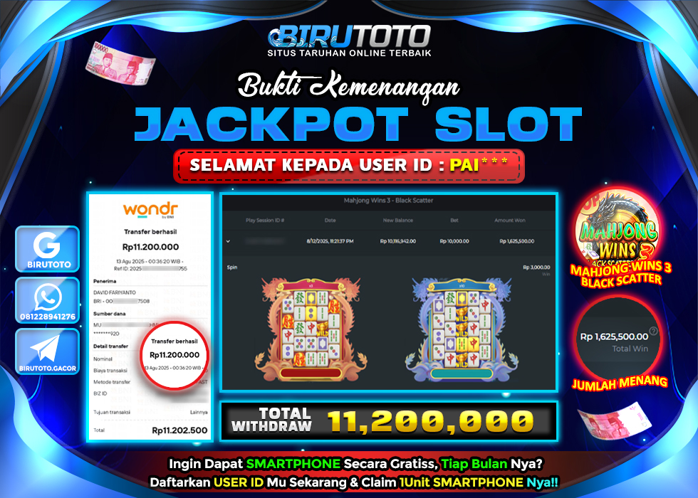 BIRUTOTO JACKPOT SLOT MAHJONG WINS 3 - BLACK SCATTER Rp.11.200.000 LUNAS
