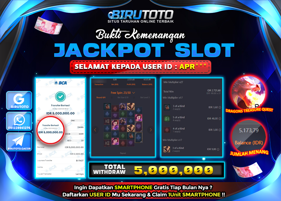 Selamat Kepada Member BIRUTOTO AP**** Telah Jackpot Di SLOT DRAGONS TREASURE QUEST