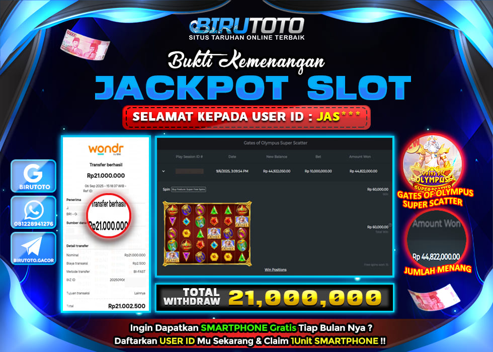 Selamat Kepada Member BIRUTOTO JA**** Telah Jackpot Di SLOT GATES OF OLYMPUS SUPER SCATTER