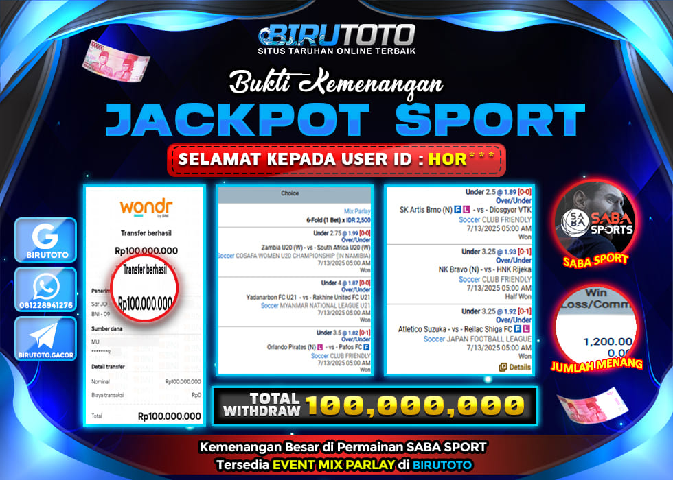 BIRUTOTO JACKPOT SPORT SABA SPORTS Rp.100.000.000 LUNAS