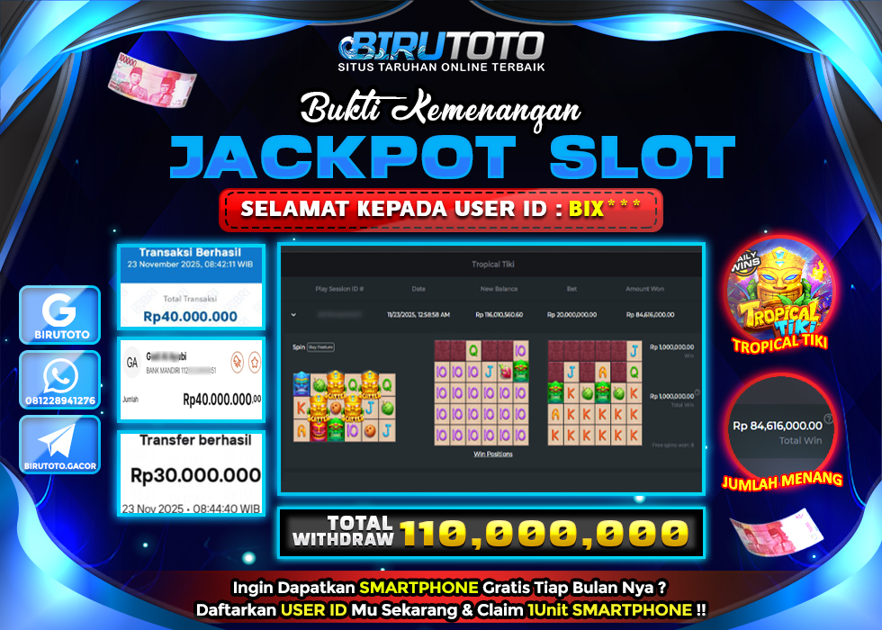 BIRUTOTO JACKPOT SLOT TROPICAL TIKI Rp.110.000.000 LUNAS