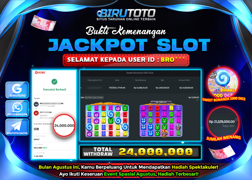 BIRUTOTO JACKPOT SLOT SWEET BONANZA 1000 DICE Rp.24.000.000 LUNAS