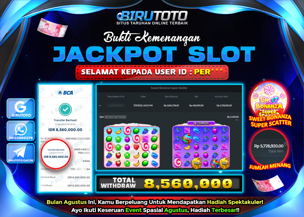 Selamat Kepada Member BIRUTOTO PE**** Telah Jackpot Di SLOT SWEET BONANZA SUPER SCATTER
