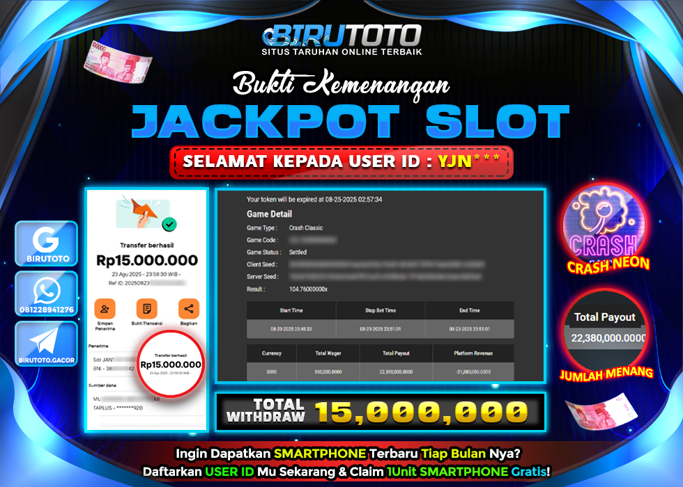 BIRUTOTO JACKPOT SLOT CRASH NEON Rp.15.000.000 LUNAS