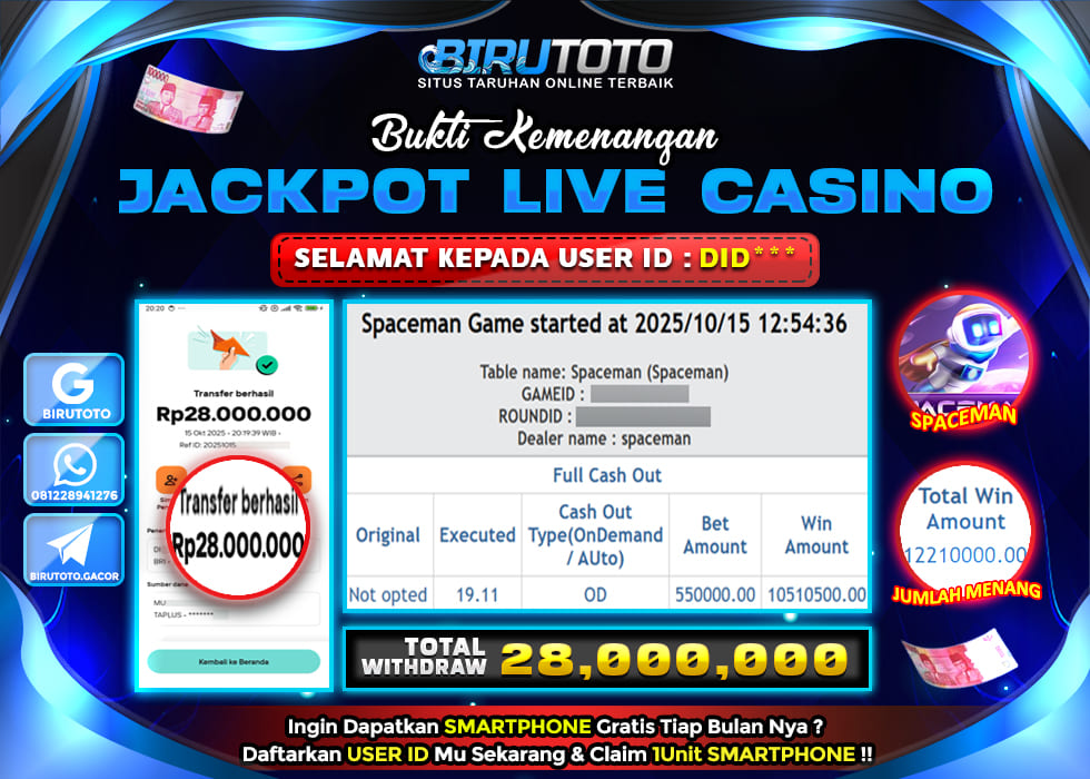 BIRUTOTO JACKPOT LIVE CASINO SPACEMAN Rp.28.000.000 LUNAS