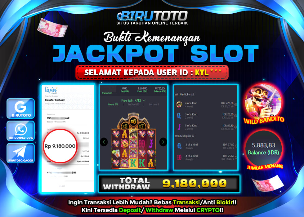 Selamat Kepada Member BIRUTOTO KY**** Telah Jackpot Di SLOT WILD BANDITO
