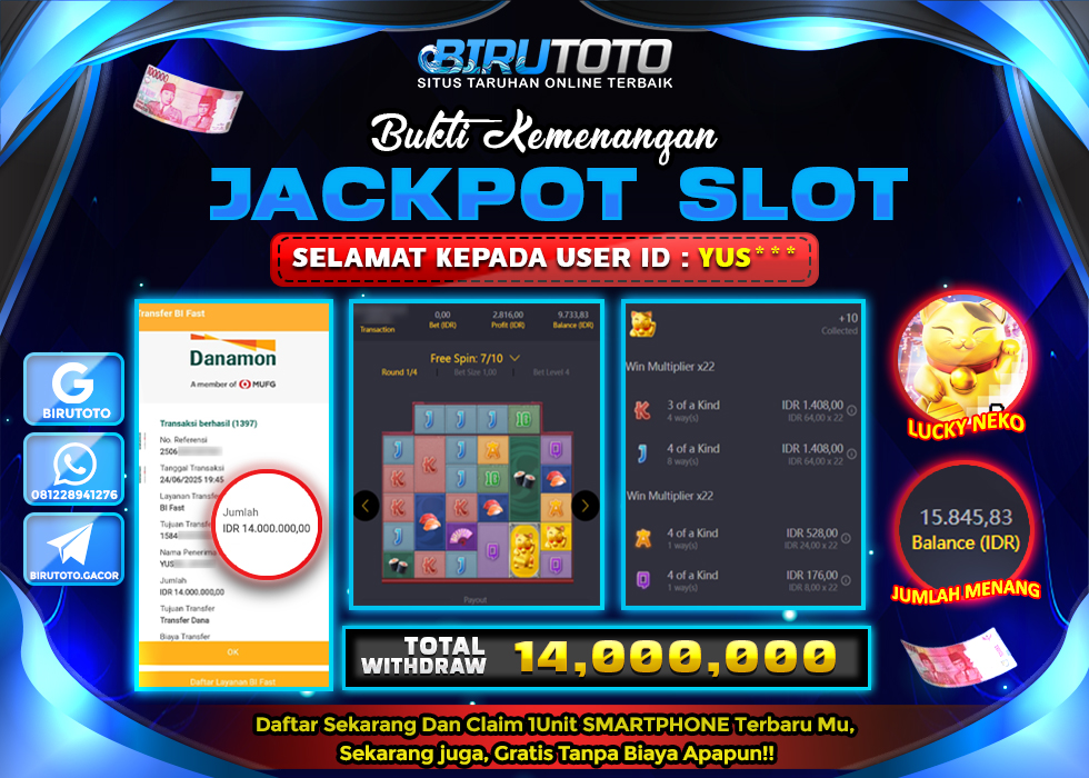 BIRUTOTO JACKPOT SLOT LUCKY NEKO Rp.14.000.000 LUNAS