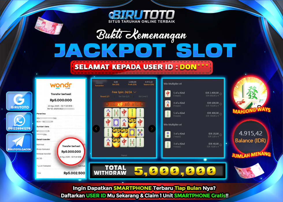 BIRUTOTO JACKPOT SLOT MAHJONG WAYS Rp.5.000.000 LUNAS