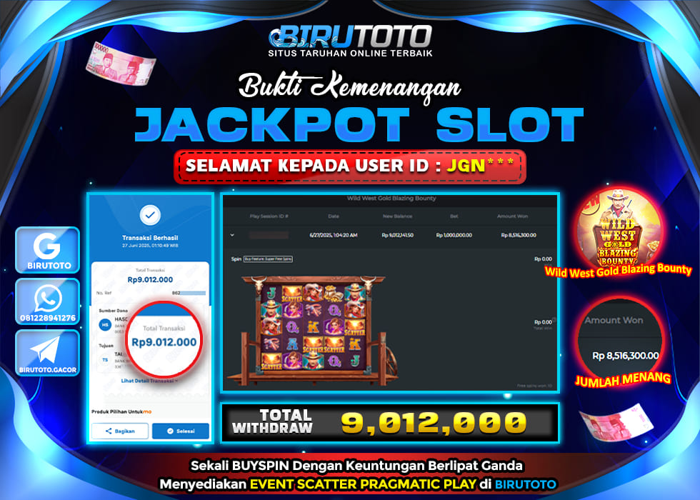 BIRUTOTO JACKPOT SLOT WEST GOLD BLAZING BOUNTY Rp.9.012.000 LUNAS