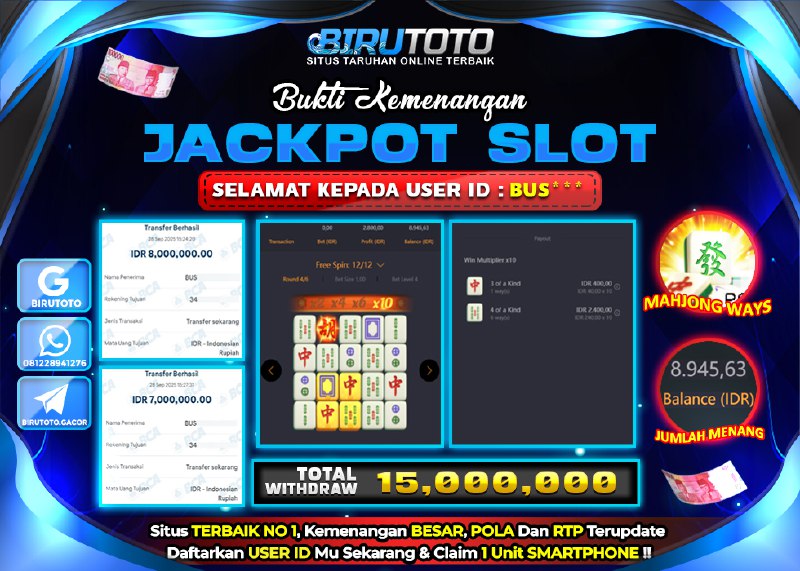 BIRUTOTO JACKPOT SLOT MAHJONG WAYS Rp.15.000.000 LUNAS