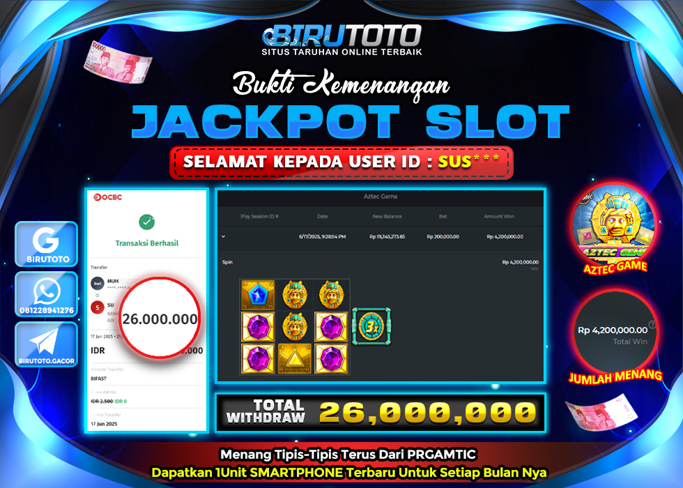 Selamat Kepada Member BIRUTOTO SU**** Telah Jackpot Di SLOT AZTEC GAME