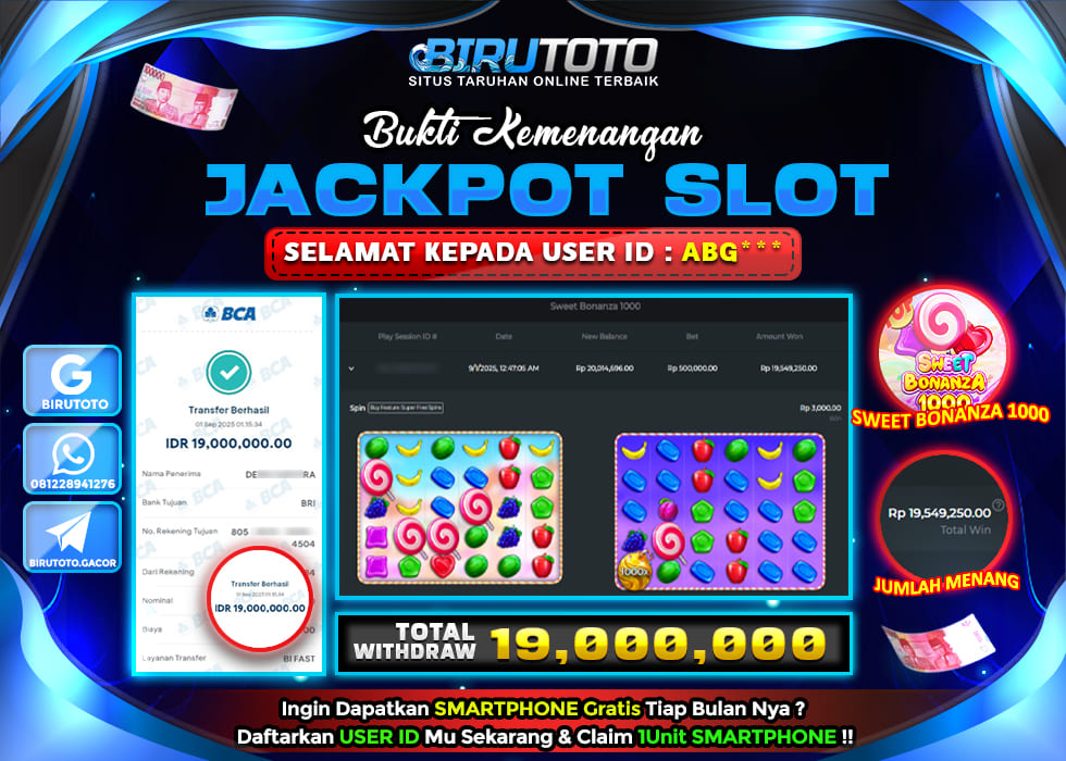 BIRUTOTO JACKPOT SLOT SWEET BONANZA 1000 Rp.19.000.000 LUNAS