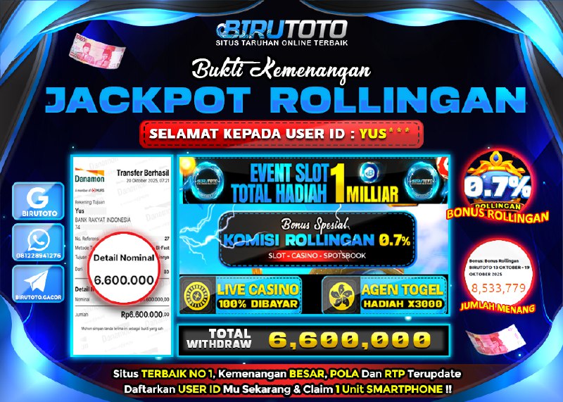 BIRUTOTO JACKPOT BONUS ROLLINGAN Rp.6.600.000 LUNAS