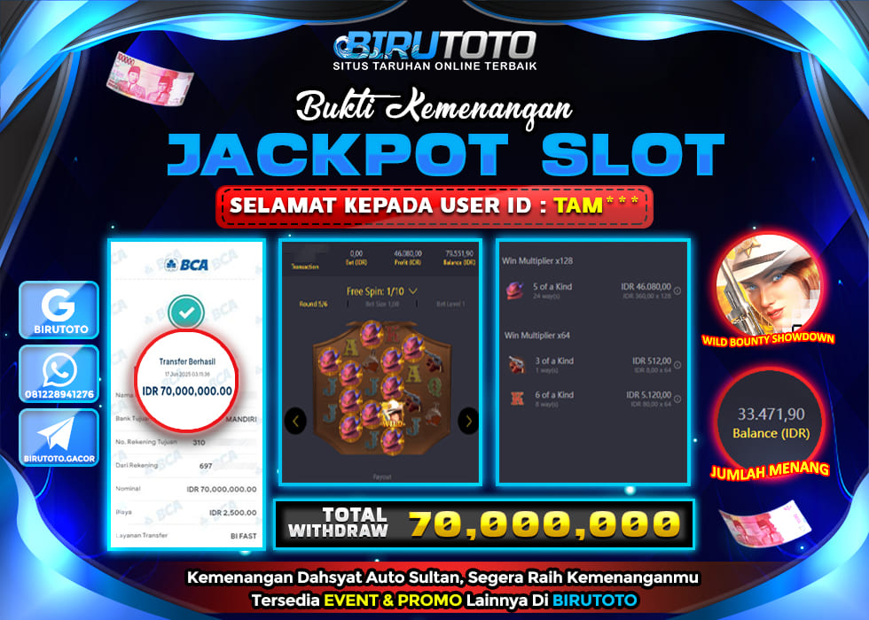 BIRUTOTO JACKPOT WILD BOUNTY SHOWDOWN Rp.70.000.000 LUNAS