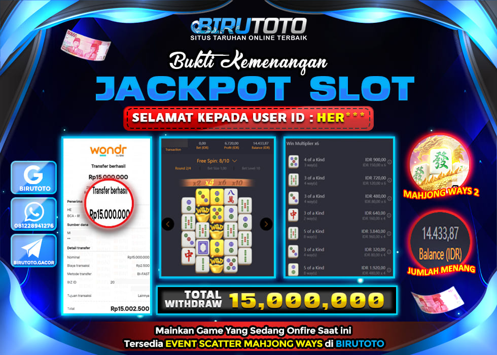 Selamat Kepada Member BIRUTOTO HE**** Telah Jackpot Di SLOT MAHJONG WAYS 2