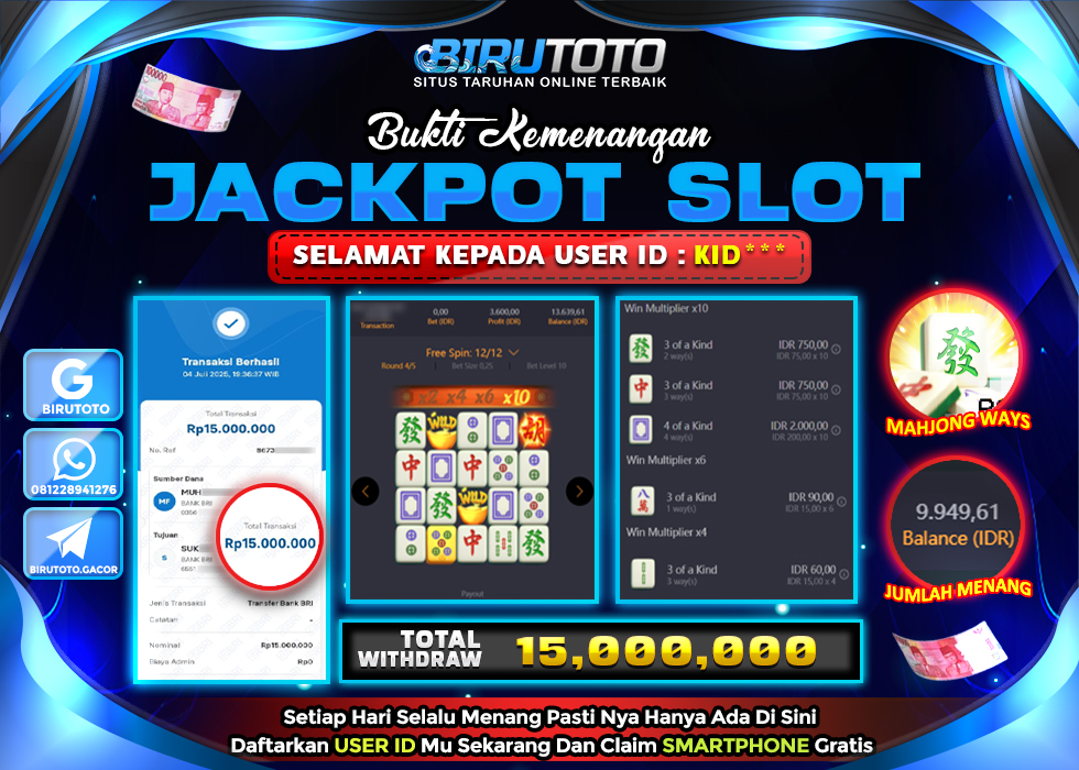 BIRUTOTO JACKPOT SLOT MAHJONG WAYS Rp.15.000.000 LUNAS