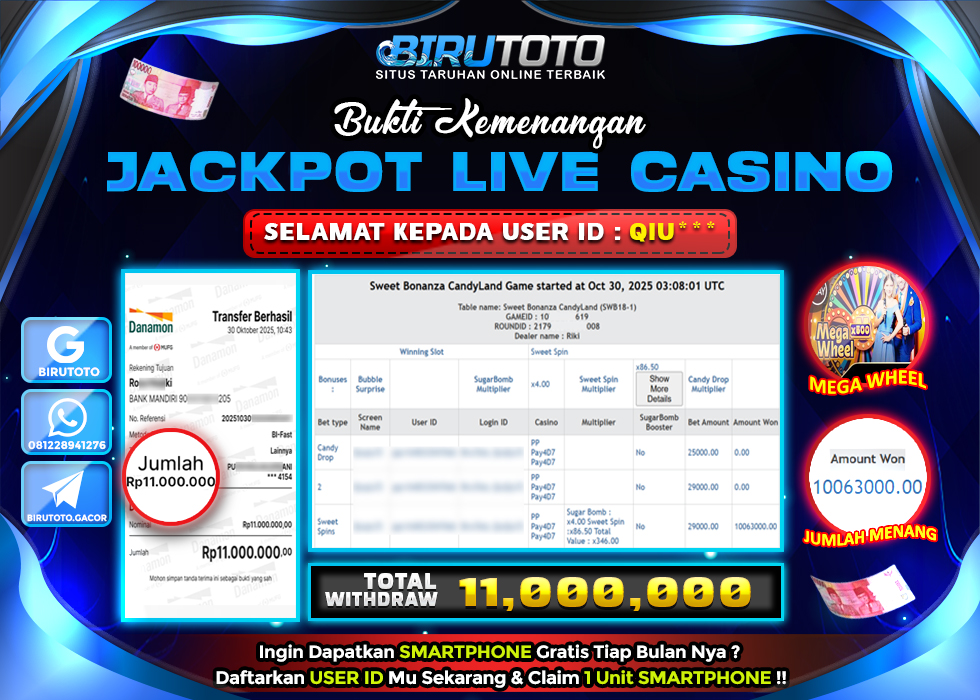 BIRUTOTO JACKPOT LIVE CASINO MEGA SICBO Rp.11.000.000 LUNAS