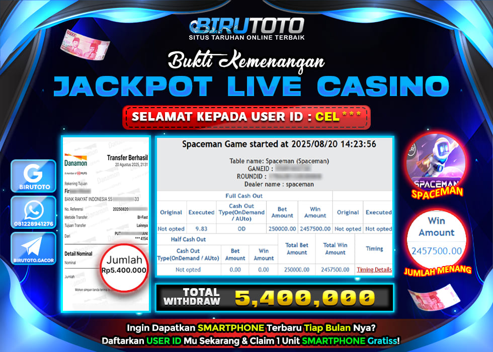BIRUTOTO JACKPOT LIVE CASINO SPACEMAN Rp.5.400.000 LUNAS