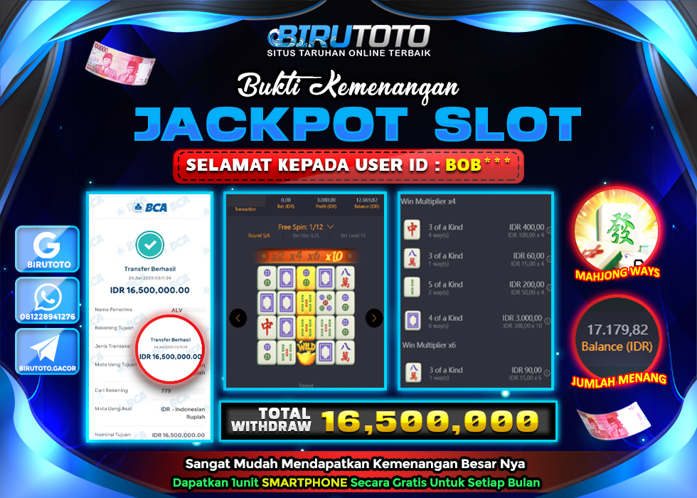 BIRUTOTO JACKPOT SLOT MAHJONG WAYS Rp.16.500.000 LUNAS