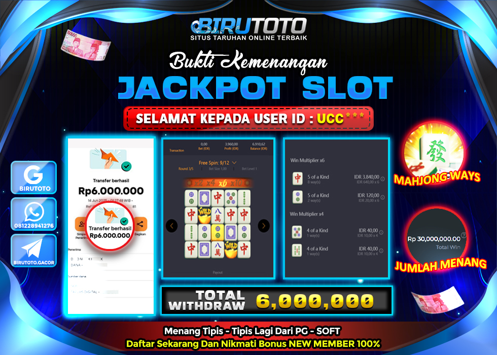 Selamat Kepada Member BIRUTOTO UC**** Telah Jackpot Di SLOT MAHJONG WAYS