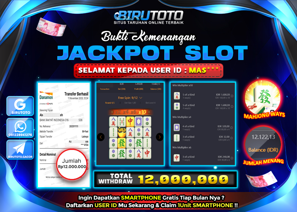 BIRUTOTO JACKPOT SLOT MAHJONG WAYS Rp.12.000.000 LUNAS